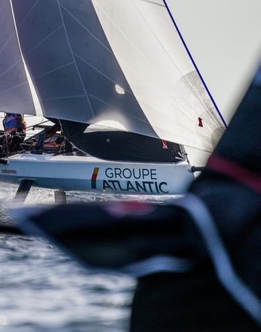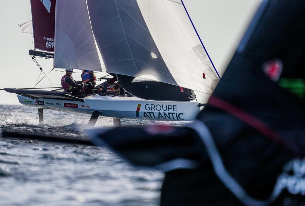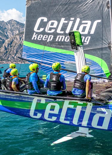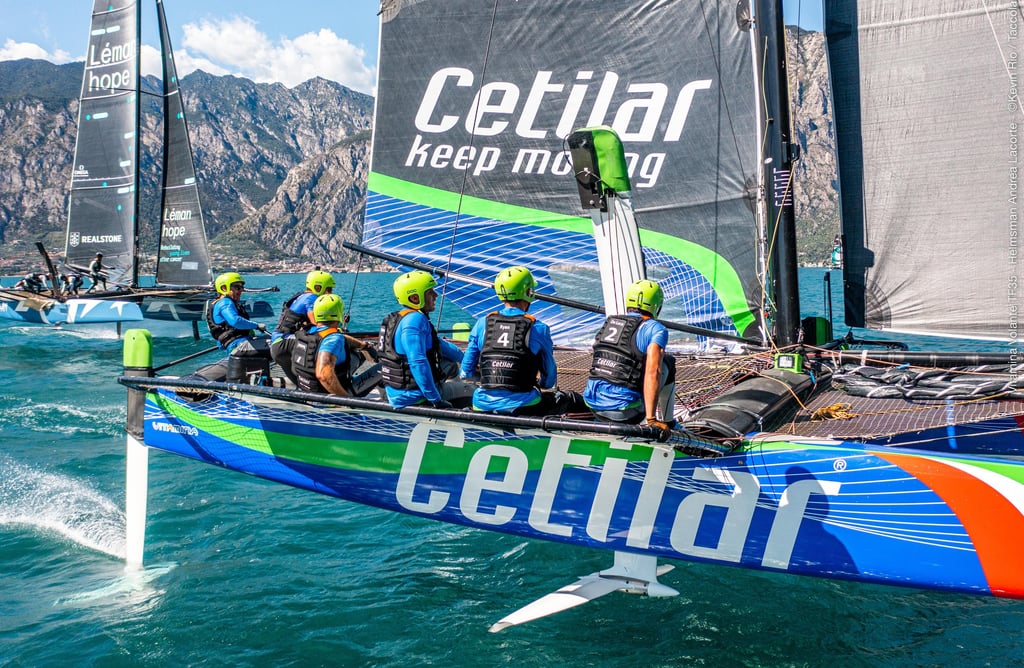 The TF35 catamaran, is designed by top America's Cup experts, uses an automatic foil trimming system for efficient foiling, maintaining speed and ride height with precision.
